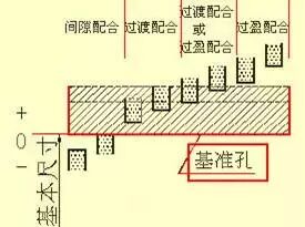 见左下图。基孔制的孔称为基准孔,其基本偏差代号为H,其下偏差为零。