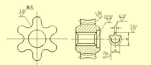 中心孔的工作表面,键槽的工作表面,倒角,圆角的表面粗糙度代号可以简化标注。