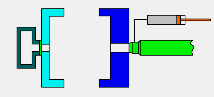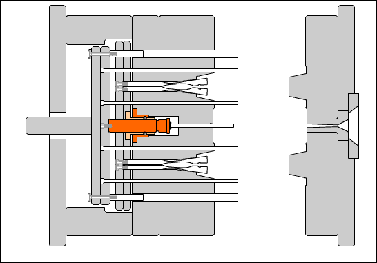顶针潜伏式进胶机构▲