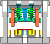 2、复合模:只有一个工位,在压力机的一次行程中,在同一工位上同时完成两道或两道以上冲压工序的模具。