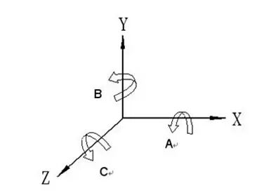 5轴加工是机械切削方式中最先进的加工方式。在数控机床中,共有6条坐标轴:3 个方向的直线轴 XYZ, 以及相应的3个旋转轴 ABC(如下图)。