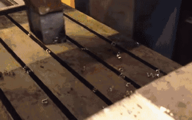 而另一种如下图所示,铣刀单纯做旋转运动,工件可以沿着前后、左右、上下三个方向移动。