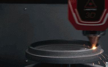 在激光所到之处,表层的金属粉末完全熔融结合在一起,而没有照到的地方依然保持着粉末状态。整个过程都需要在一个充满惰性气体的密封舱内进行。