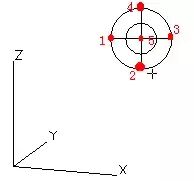 (1)小“+”光标如在小圆5内移动,由Z正向看X-Y平面,若在圆心处为俯视图方向;在小圆外大圆内时,表示从Z负向看X-Y平面;