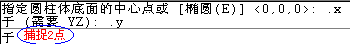 (1)执行画圆柱体命令,命令提示如图二所示,输入“。X”回车后捕捉1点。然后显示提示如图三所示;