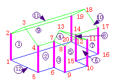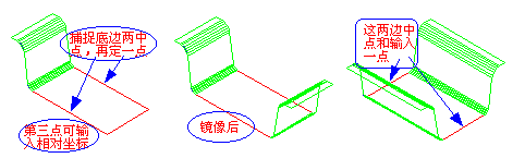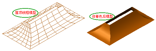 变换坐标(UCS)系画出屋坡面的圆弧曲线;利用三维镜像技巧画出其它三条弧线。
