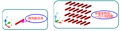注意:二维阵列命令在三维建模时仍可使用,但只能在X-Y平面内执行;而三维阵列命令(3Darray)是在空间执行,即增加了层。