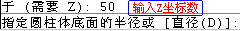 (3)最后直接输入Z坐标值,再完成圆柱体的作图。