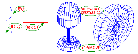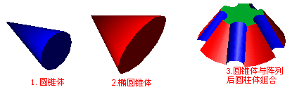 但该命令()即可绘制圆锥体,也可绘制椭圆锥体,如图四十三中的1、2图所示。