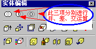 所谓的面域布尔运算就是逻辑计算,用户需要打开实体编辑工具条,如图九所示,其中前三项是面域的布尔运算命令。