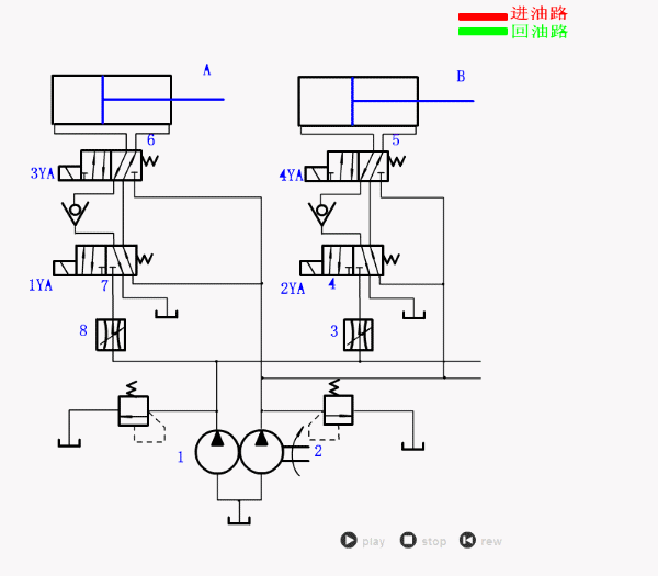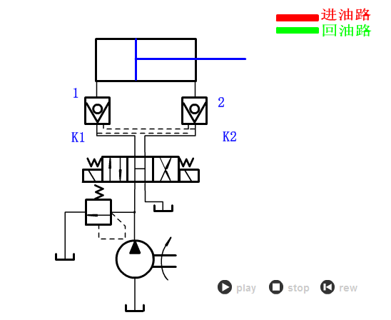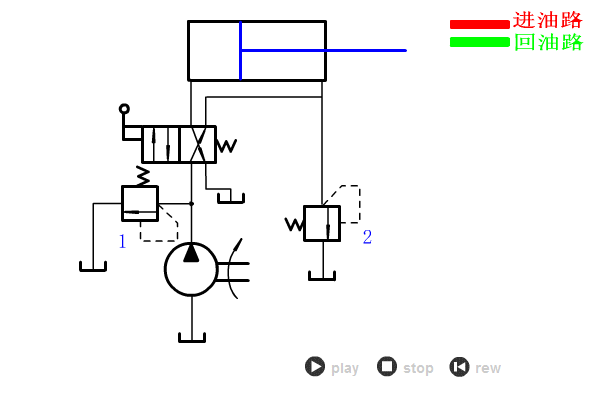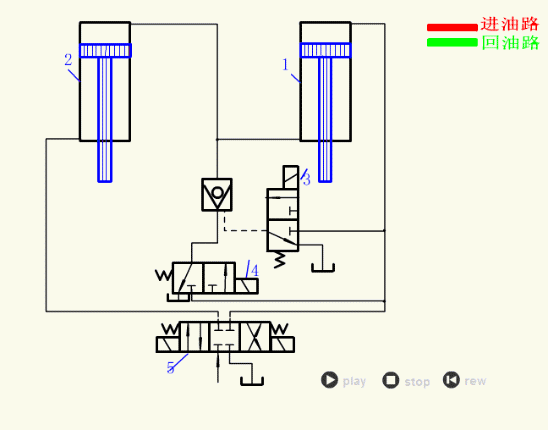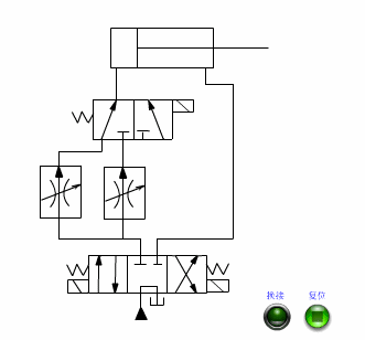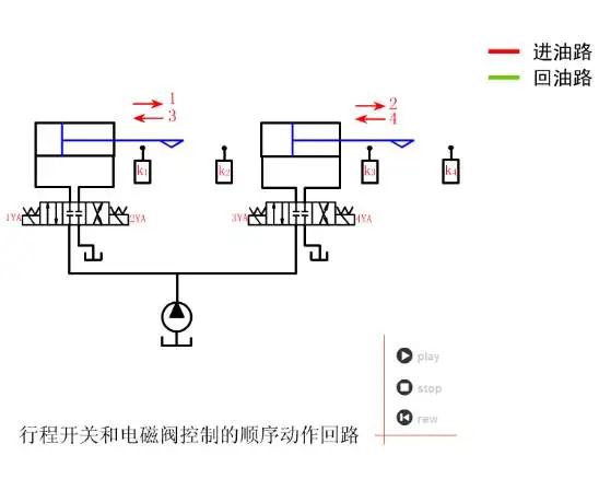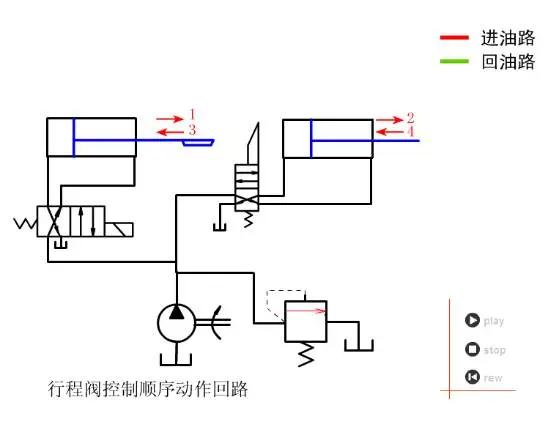 63.行程开关和电磁换向阀控制的顺序运动回路
