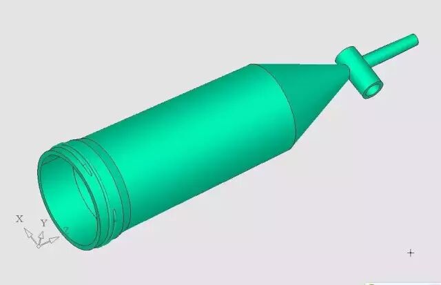 从图中可以看到,产品的小头有个小圆管,是用来装旋阀的位置,剖视图中可以看到,模具的型芯是一边长一边短的,产品肯定会依附在型芯长的一边的滑块上。