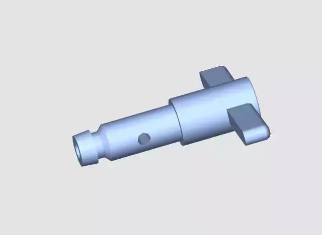 根据产品的特征,产品的外分模面一定是在中间的。但是由于侧抽芯是一边长一边短,所以,分出来的滑块1是这样的,见下图。
