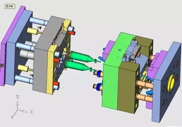 进胶形式怎么安排,是本案例的关键。通过思考和推理,模具的总结构应该是这样的,见下图。