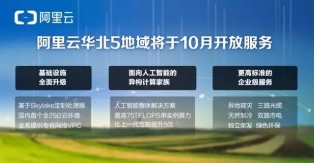 3、阿里云宣布华北5地域十月开服,侧重服务人工智能